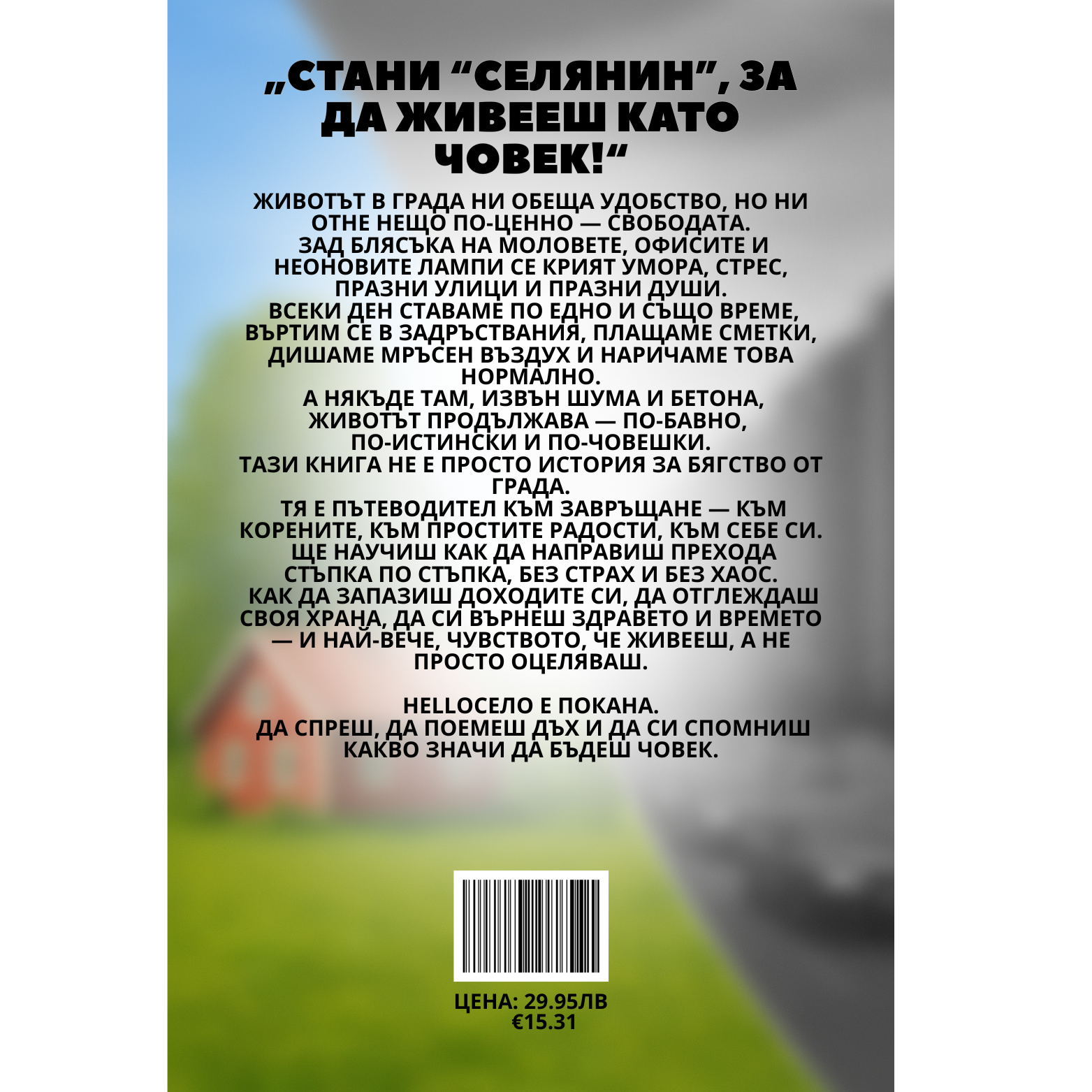Книгата HelloСело е за всеки, който е уморен от градския шум, стрес и бързане, и усеща, че иска промяна. Независимо дали мечтаеш за къща в планината или просто за по-бавен, осъзнат живот — тук ще откриеш реални стъпки как това може да стане възможно.